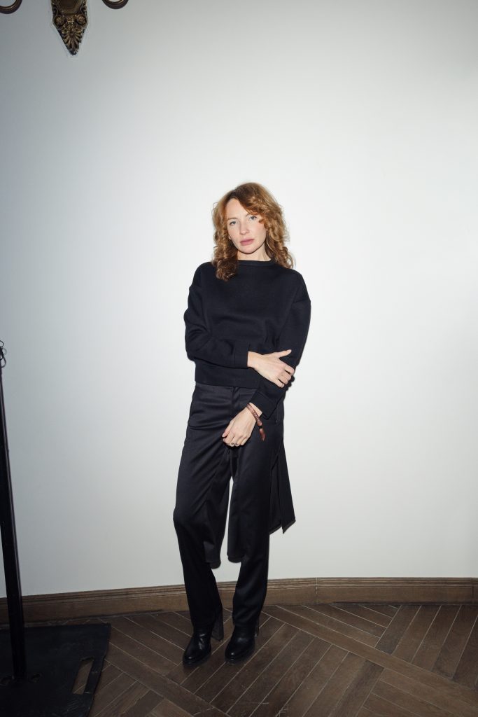 Очень красиво на этой неделе Евгения Линович представила новую капсулу Masterpeace в соавторстве с Театром Москвы. Вообще, каждый показ бренда – настоящий перформанс: редакторы PEOPLETALK были и на модном шоу на стройке, и на Варварке с участием хора, и в театре. Сама дизайнер не раз упоминала, что любит формат капустников, поэтому каждый ивент создает в своей фирменной театральной манере. В этот раз событие прошло в рамках громкой постановки спектакля «Компромисс» по мотивам прозы Сергея Довлатова на сцене «Арт Платформы». Именно тексты писателя стали источником вдохновения для Евгении, ведь в них за внешней сдержанностью 70–80-х годов всегда скрывалась личная история. «Посмотрев спектакль про любимого писателя, я решила представить, как бы могла выглядеть модница того времени: учительница, студентка, старшеклассница, директор завода, инженер», – отметила Линович. Герои светской хроники насладились не только самой постановкой, но и ярким антрактом, прошедшим в виде перформанса, который превратил классическое дефиле в живое высказывание об эстетике позднего СССР. Брюки превращаются…