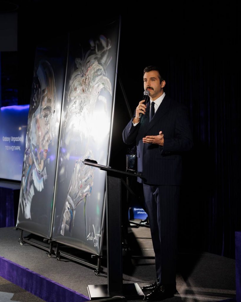 Вечер 25 декабря герои светской хроники, следящие за новинками техники, провели в «Технопарке» в «Афимолле», где состоялось закрытое событие Galaxy Unpacked. Необычным для приглашенных стал указанный дресс-код – Black Tie: изначально многие не понимали, как соблюсти его, приезжая в торговый центр. Однако решение они все же нашли, и многие действительно посетили ивент в формате Black Tie – одни выбрали вечерние платья, другие – строгие темные костюмы. Первое, что увидел редактор светской хроники, попав в магазин, – две металлические панели, на которых художник писал картину. Как выяснилось позже, именно за созданной композицией скрывалась та самая новинка – Samsung Galaxy S26. Между прочим, до ее презентации героям светской хроники скучать не пришлось – Иван Ургант проводил аукцион. На нем муж Саши Жарковой Евгений Давыдов приобрел лот – скульптуру «Лягушки» – за 70 тысяч рублей, а Руслан Усачев – секретный бокс от «Технопарка» стоимостью 300 тысяч рублей. «Вы такой яркий, вам бы свой видеоблог вести», – с иронией произнес Ургант, вызвав смех зрителей. Честно говоря, улыбка не сходила с наших лиц на протяжении всего вечера. Чуть позже Ивана сменил Дмитрий Бескромный, который, опережая трансляцию из Сан-Франциско, рассказывал о новой модели смартфона так, что даже редактор светской хроники захотел ее приобрести, хотя является поклонником бренда-конкурента.