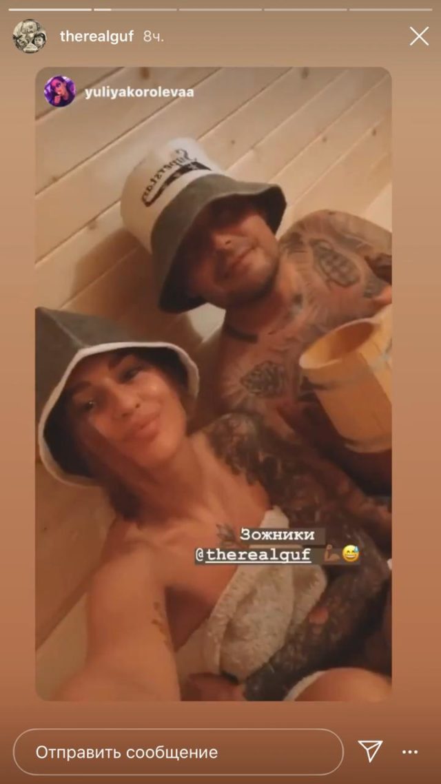 А теперь рэпер опубликовал Stories, на котором отдыхает в компании модели Юлии Королевой. Судя по фото, они вместе проводили время в сауне.