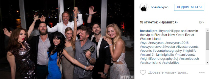Актер и его невеста провожали уходящий год в компании своих друзей, отдыхали и веселились. Когда часы пробили двенадцать, пара по традиции поцеловалась, чтобы весь год им сопутствовала удача.