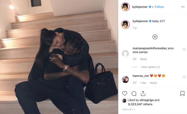 Так, когда она поделилась фото со своим парнем Трэвисом Скоттом, которое подписала «мой малыш», фанаты принялись поздравлять пару с пополнением в семье.
