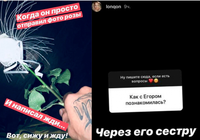 Все началось с того, что у себя в Stories девушка опубликовала фото руки Егора и написала: «Когда он просто отправил фото розы и написал жди… Вот, сижу и жду!» (Орфография и пунктуация автора сохранены – Прим. Ред.). а позже Анна ответила на вопрос подписчиков о том, как она познакомилась с певцом, написав: «Через его сестру».