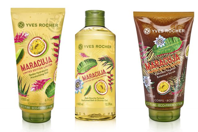 Лимитированная коллекция средств «Маракуйя», Yves Rocher (гель для душа – 200 мл, 149 р., эксфолиант для тела – 150 мл, 349 р., увлажняющий гель для тела – 200 мл, 349 р.)