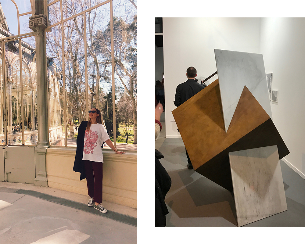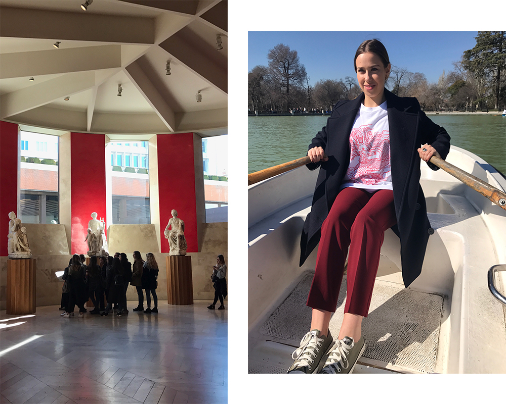 В Мадрид мы с Анкой (студентка БВШД и лучшая подруга Лизы Анка Ахалая (18), — Прим. ред.) полетели вдвоем, и первые три дня, до того, ка приехали остальные студенты «Британки», гуляли по городу и исследовали его. Мы каждый день старались бывать как минимум в 2 музеях. Я бы отметила музеи Reina Sofia (Центр искусств королевы Софии), CA2M и один из крупнейших и значимых музеев европейского изобразительного искусства Museo Nacional del Prado – там, безусловно, просто невероятная коллекция, но на пятисотой картине мы с Анкой сдались (Смеется.) Еще в самом сердце города разбит парк Буэн-Ретиро. Там тоже прекрасные галереи и небольшой, но очень красивый стеклянный замок.