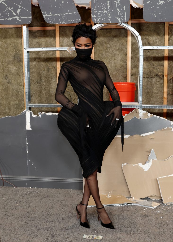 Тейана Тейлор не сбавляет обороты и продолжает разрывать индустрию. Совсем недавно она получила «Золотой глобус» в номинации «Лучшая актриса второго плана» за фильм «Битва за битвой», снялась для зимней обложки журнала Vanity Fair, а теперь вновь закрепляет за собой статус иконы стиля. Актриса появилась на Нью-Йоркской премьере фильма «Лакомый кусок» в кутюрном платье Ashi Studio из коллекции весна 2025. Стилисты Уэйман Баннерман и Мика Макдональд подобрали для нее образ, напоминающий костюм ниндзя (надеемся, отмены за культурную апроприацию не будет) с экстремально высоким воротником, похожим на маску и частично закрывающим лицо, а также с акцентными объемными бедрами, создающими почти сердцевидный силуэт. Тейана Тейлор не была бы собой, если бы платье не оказалось «голым» и провокационным, поэтому основным материалом стала полупрозрачная черная сетка.