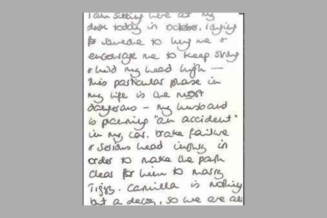 И вот, накануне годовщины ее смерти портал DailyMail опубликовал письмо принцессы дворецкому Полу Баррелу, написанное за 10 месяцев до трагедии. В нем она пишет: «На меня готовится покушение. Кто-то планирует несчастный случай с моим автомобилем, поломку тормозов, а затем тяжелую травму головы и все для того, чтобы Чарльз мог жениться». Там же Диана прямо называет человека, который стоит за этим, но раскрывать его публично запрещено для сохранения тайны следствия.