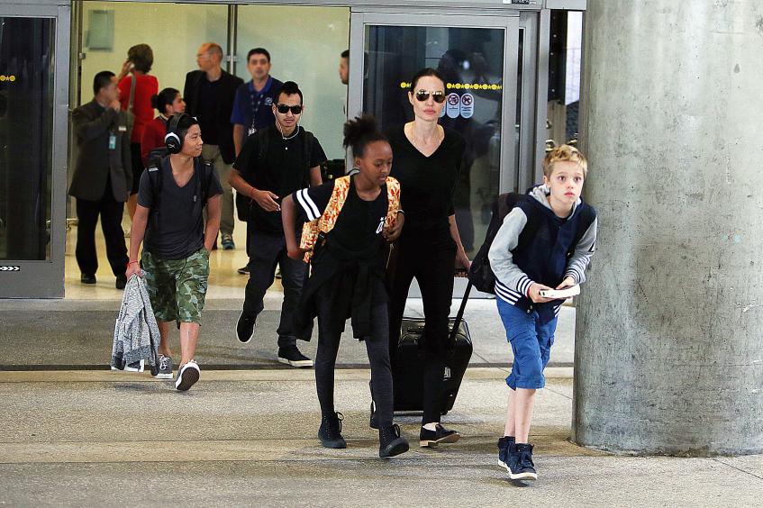 В очередной раз семейство доказало это 27 октября, когда Анджелина, одетая в простую черную кофту, брюки и туфли, вместе со своими детьми Мэддоксом (14), Пэксом (11), Захарой (10) и Шайло (9) прилетела в аэропорт Лос-Анджелеса.