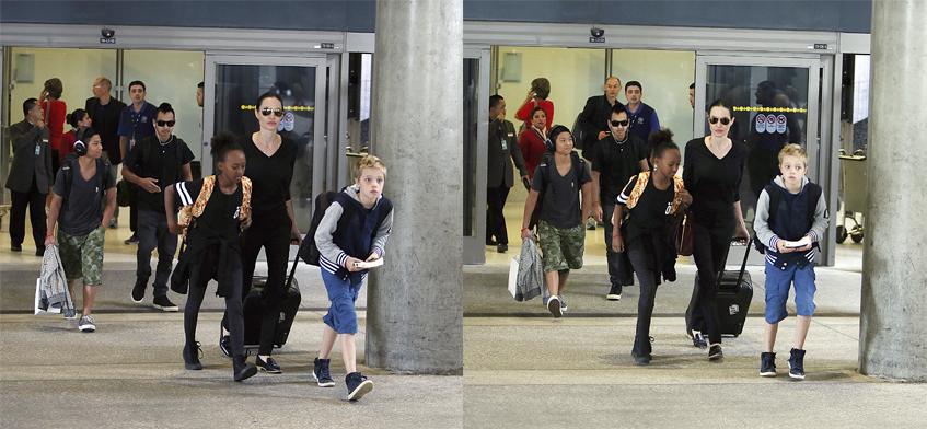 В очередной раз семейство доказало это 27 октября, когда Анджелина, одетая в простую черную кофту, брюки и туфли, вместе со своими детьми Мэддоксом (14), Пэксом (11), Захарой (10) и Шайло (9) прилетела в аэропорт Лос-Анджелеса.