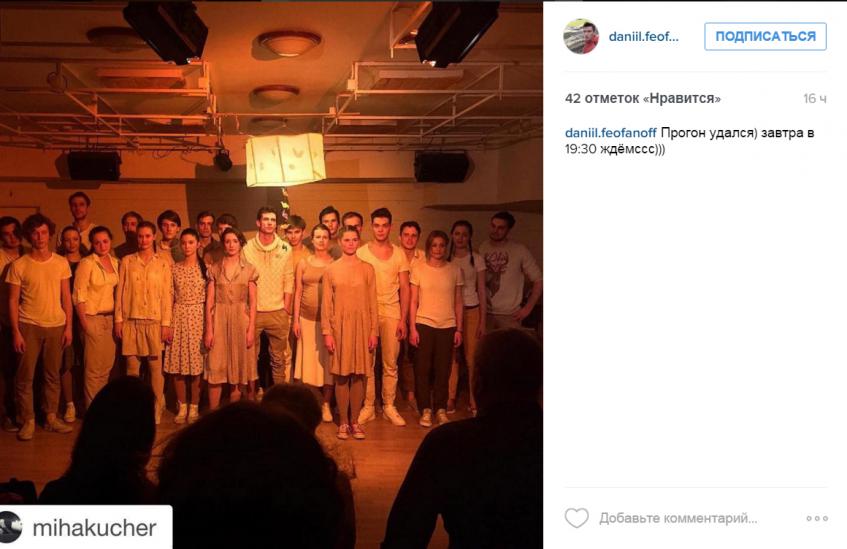 Новые снимки, на которых хорошо виден округлившийся животик Софьи, были сделаны в Школе-студии МХАТ, где сейчас учится красавица. На одном из снимков девушка запечатлена во время «прогона» нового спектакля в окружении своих сокурсников.