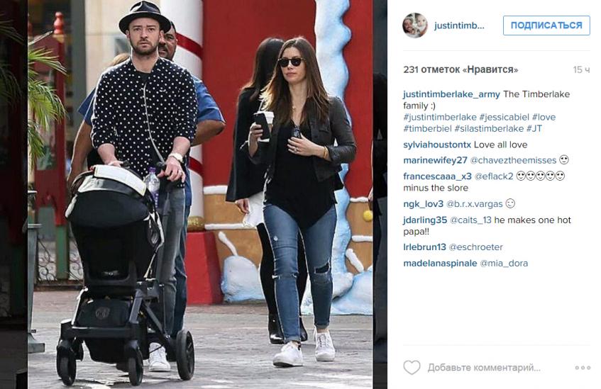 Джастин Тимберлейк и Джессика Бил вышли на прогулку с сыном