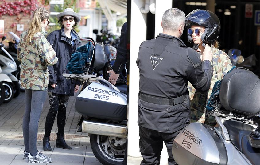 20 сентября папарацци застали сладкую парочку в Лос-Анджелесе, где они решили покататься на мотоциклах. Кара, появившаяся в серых лосинах, кедах и камуфляжном пиджаке, не смогла удержаться и сделала селфи со своей возлюбленной, которая надела темные леггинсы, короткие сапоги и широкополую шляпу. Правда, все же пришлось сменить ее на массивный шлем.