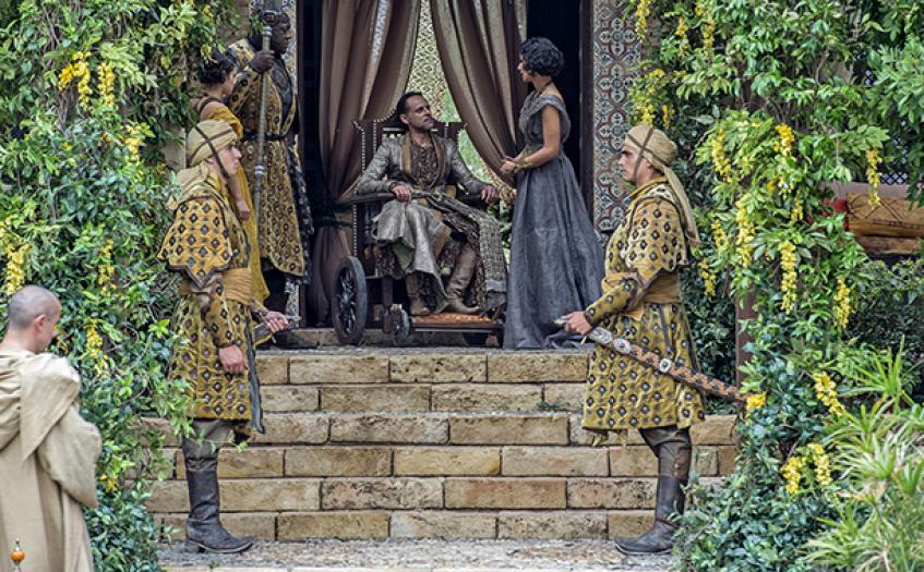 На снимках, которые опубликовал телеканал HBO, мы можем увидеть ослепшую Арью Старк, Сансу Старк и Теона Грейджойа, которые переправляются через реку и прячутся в корнях дерева, печальную Серсею, корабль Хайме, который идет в Королевскую гавань, орды дотракийцев, Дейенерис, стоящую рядом с Кхалом Моро, а также Элларию Сэнд вместе с принцем Дорна.