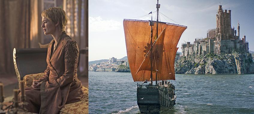 На снимках, которые опубликовал телеканал HBO, мы можем увидеть ослепшую Арью Старк, Сансу Старк и Теона Грейджойа, которые переправляются через реку и прячутся в корнях дерева, печальную Серсею, корабль Хайме, который идет в Королевскую гавань, орды дотракийцев, Дейенерис, стоящую рядом с Кхалом Моро, а также Элларию Сэнд вместе с принцем Дорна.