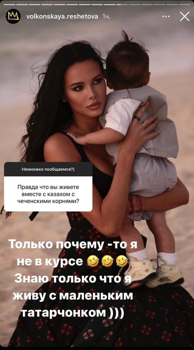 Так, например, накануне один из подписчиков Решетевой поинтересовался, правда ли, что она живет вместе с казахом с чеченским корнями, на что она ответила: «Только почему-то я не в курсе. Знаю только что я живу с маленьким татарчонком))) (здесь и далее: орфография и пунктуация автора сохранены – Прим. ред.)».