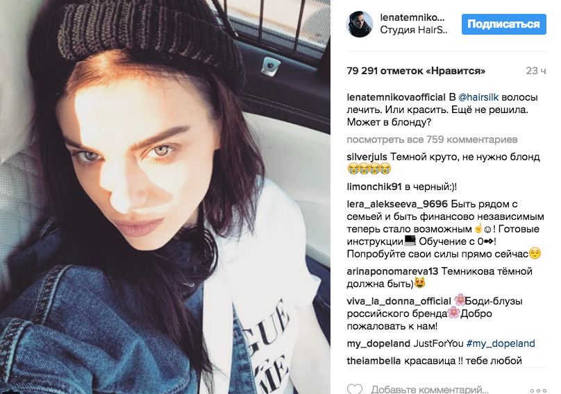 Кстати, Лена довольно редко меняет образ. Все помнят ей брюнеткой еще со времен «Фабрики звезд-2». На проект Темникова пришла шатенкой с каре.