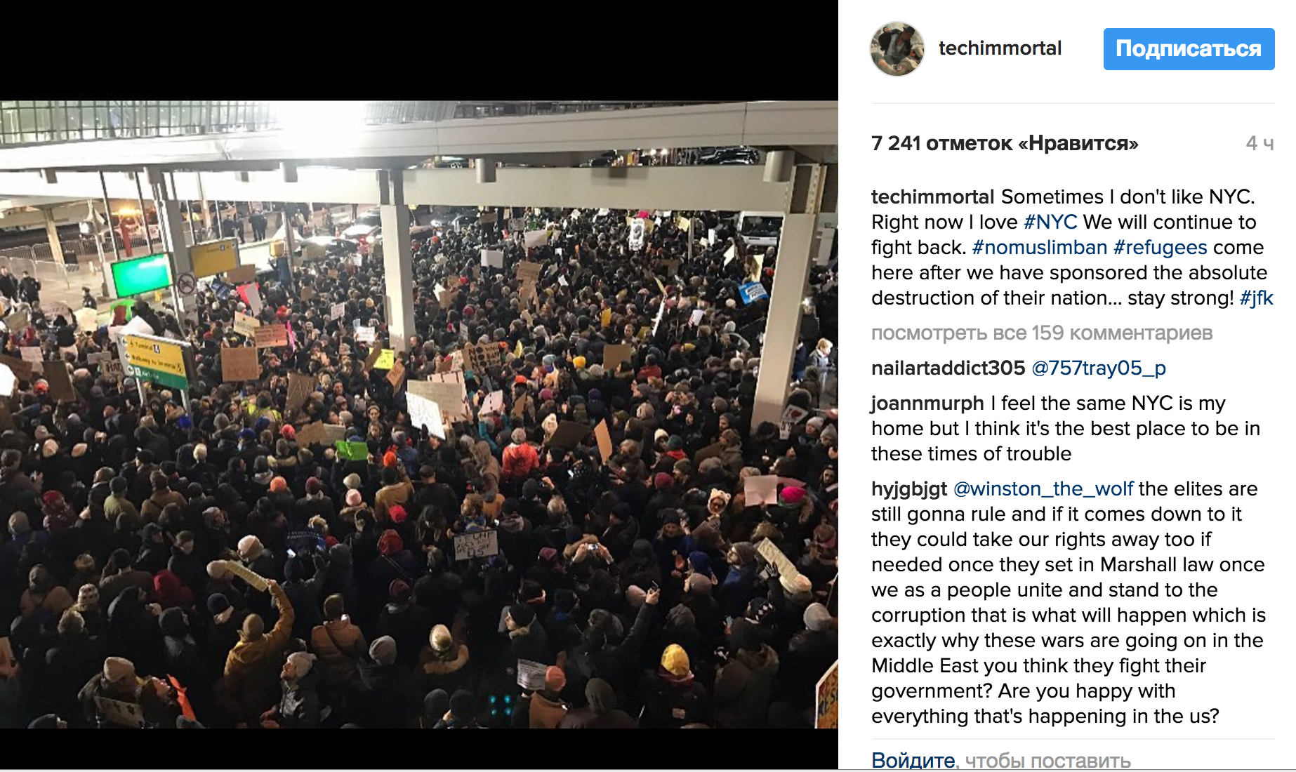 Сначала в аэропорту Нью-Йорка прошел митинг (люди бастовали с четырех утра с плакатами «нет страху, нет ненависти, беженцам здесь рады»), а потом участники акции вышли на улицы во главе с моделями Беллой (20) и Джиджи Хадид (21). У их отца, мультимиллионера Мохамеда Хадида (68), есть иорданские, мусульманские и палестинские корни, поэтому девушек крайне возмутила такая дискриминация. Да и бойфренд Джиджи, певец Зейн Малик (24), мусульманин. Так что красавицам есть что отстаивать!