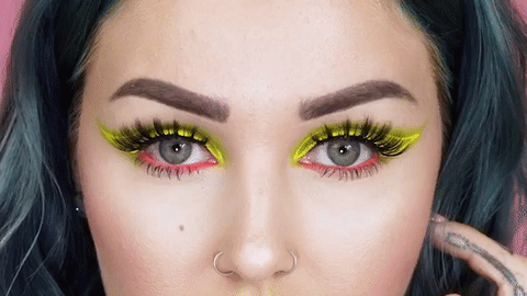 Аналогично действуешь, если хочешь сделать космический макияж губ. В качестве основы используй матовую помаду, а сверху черти линии по контуру неоновой подводкой для глаз. Да, к сожалению, пока нет отдельных продуктов для губ. Но и без них ты легко справишься!