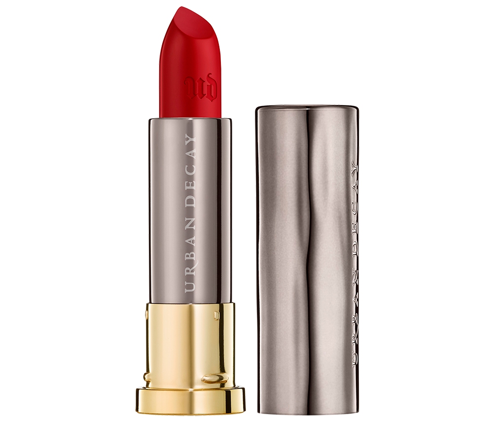 3. Помада тебе нужна матовая. Наноси ее кисточкой, чтобы контур получился ровным и четким.