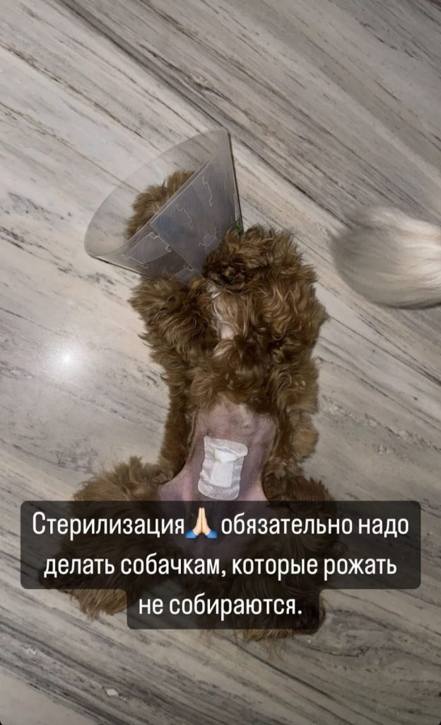 «Стерилизация. Обязательно делать собачкам, которые рожать не собираются», — написала Ксения. Также она опубликовала фото животного, добавив к нему «плачущие» эмодзи.