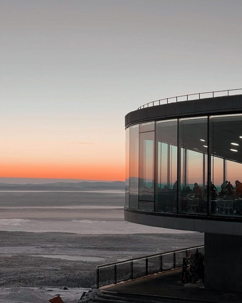Отдельным пунктом поездки в Хибины точно стоит выделить посещение нового высокогорного ресторана «Плато» в Кировске. Представь, здание на высоте 820 метров над уровнем моря с обзором 360°, панорамным остеклением и открытой верандой. У любого столика в этом ресторане гарантированно лучший вид на горные пейзажи. Советуем попробовать оленину во всех возможных вариантах, морошковый мусс и чизкейк с карамелизированным ягелем.