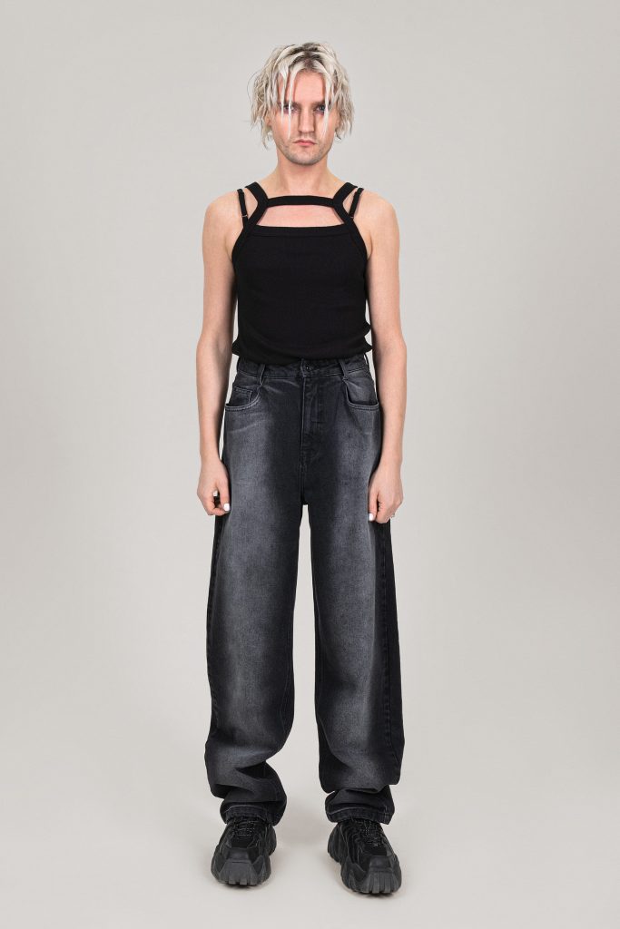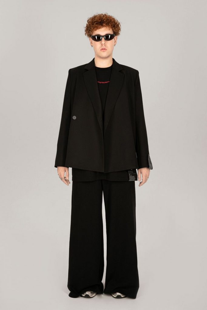 В коллекциях авангардного бренда post post scriptum нет четкого разделения на мужские и женские вещи. Нам предлагают свободу выбора без ориентира на устоявшиеся нормы и правила. Самым смелым дизайнерская команда бренда советует носить топы сложной конструкции и лонгсливы с вырезами. А вот тем, кто чуть скромнее, предлагают заценить мешковатые джинсы с эффектом тай-дай, объемные пиджаки и брюки с фирменным патчем, а также худи.