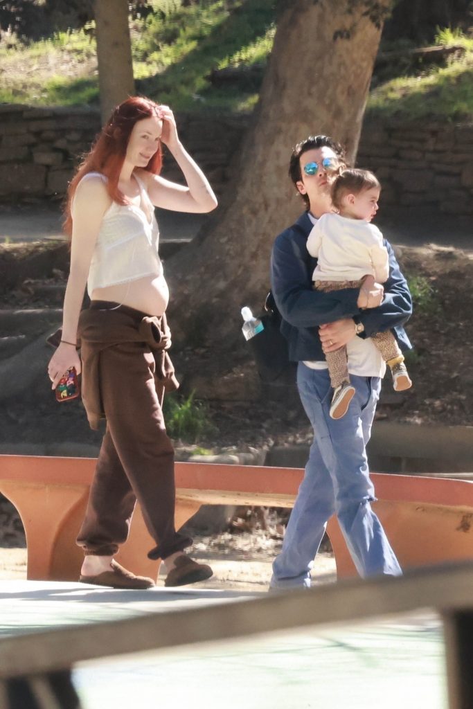 Актриса вышла на прогулку в открытом топе и джинсах с низкой посадкой. Пользователи предположили, что Софи находится приблизительно на пятом месяце беременности.