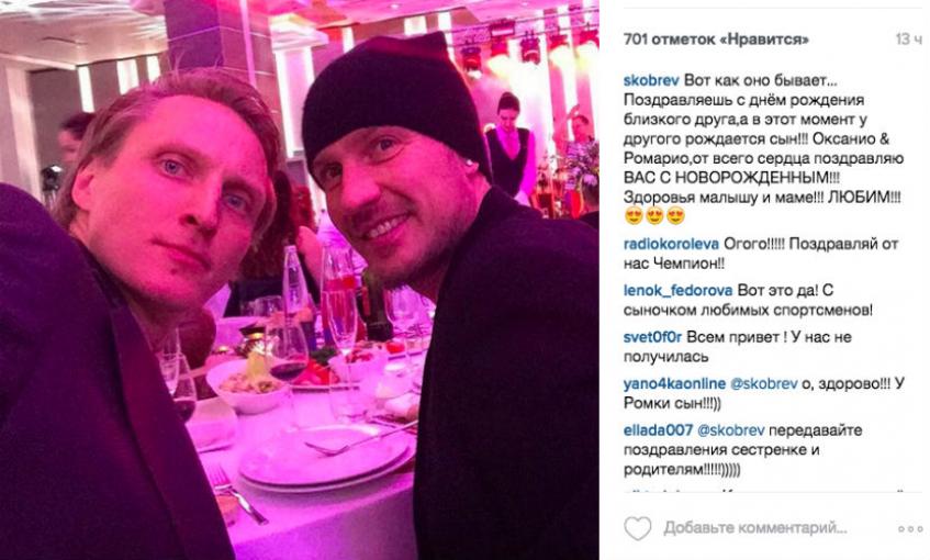 Однако узнали об этом поклонники Оксаны и Романа вовсе не от самих родителей, а от их друга, конькобежца Ивана Скобрева (32), который опубликовал в Instagram фото со счастливым отцом. «Вот как оно бывает… Поздравляешь с днём рождения близкого друга, а в этот момент у другого рождается сын! Оксанио & Ромарио, от всего сердца поздравляю вас с новорожденным! Здоровья малышу и маме!» — написал Иван.