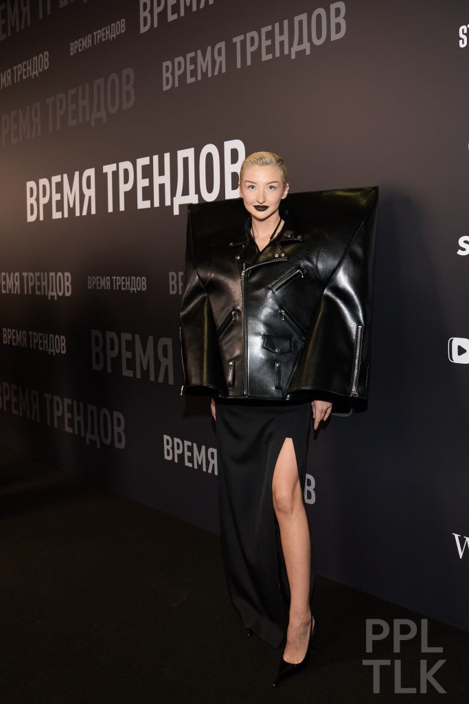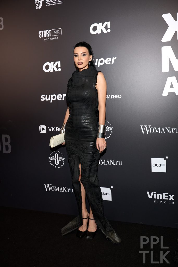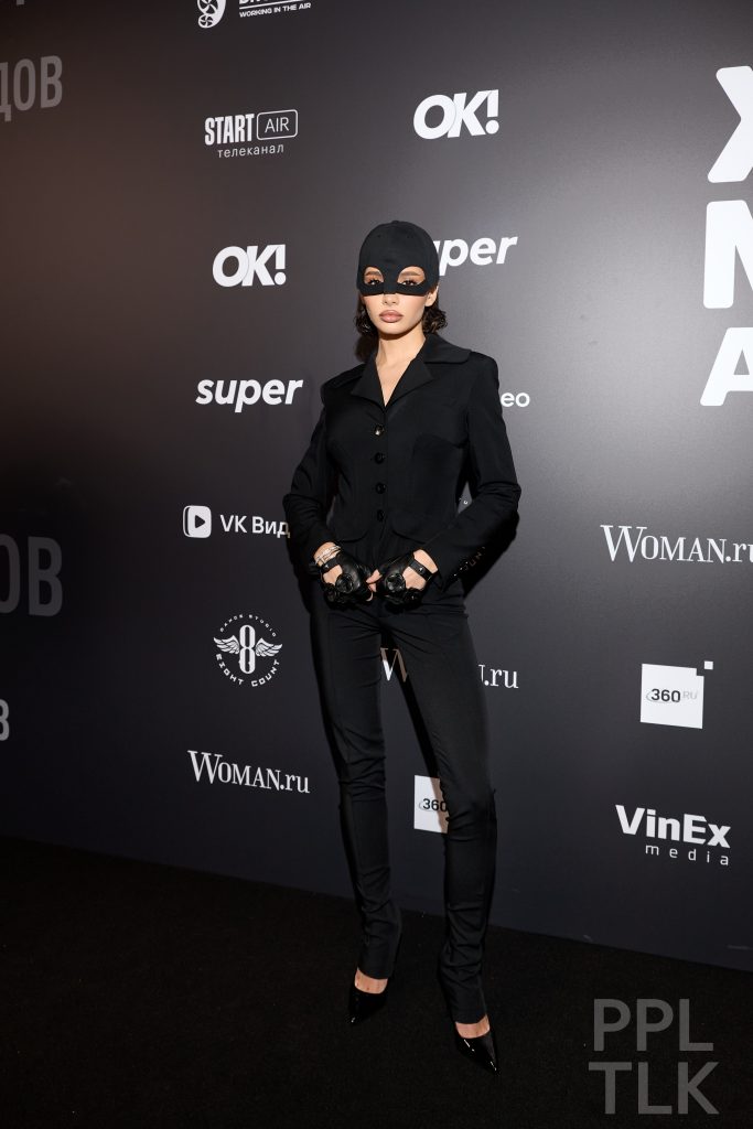 На этот раз ковровая дорожка была черная, а дресс-код: total black. Я заранее понимала – тут будет множество креативных образов, и представляла все, что угодно, но только не платье, состоящее более чем из ста черных мусорных пакетов. Да, у пресс-вола журналисты и такое увидели. К счастью, все неудачные выходы были компенсированы роскошными луками более медийных персон. Карина Мурашкина, например, пришла с рогами лося на голове: позже на сцене она призналась, что это была отсылка к тому, что один мужчина буквально наставил ей рога. Если кратко: во время их отношений он скрывал наличие жены. Я оценила и скромный, но элегантный наряд Ольги Парфенюк – черное платье с открытыми плечами.