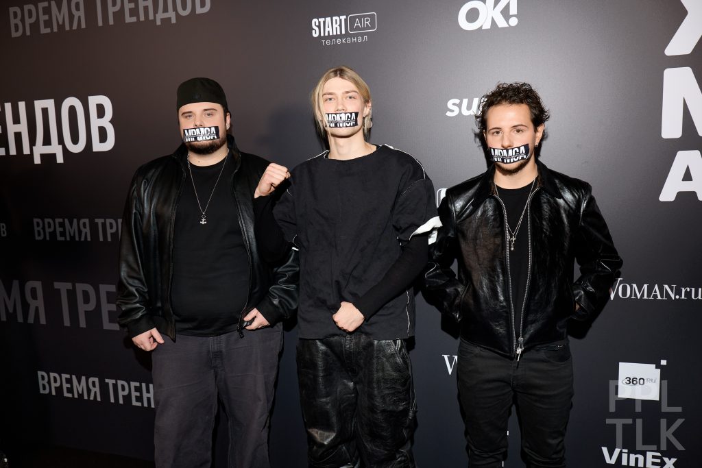 Вернемся к другим креативным выходам: Гоша Карцев вышел вместе с четырьмя своими двойниками, Катя Голден своим образом напомнила мне Кловер из Totally Spies, Анна Седокова единственная пришла в белом платье (напомню, дресс-код: total black), а Artem Shilovets, nkeeei и uniqe заклеили рты скотчем. Впрочем, именно это хочет сделать каждый журналист в конце рабочей недели (а лучше – каждый день), чтобы ни с кем не общаться.