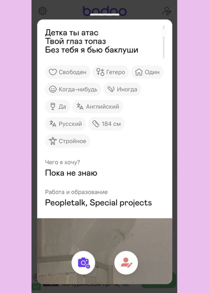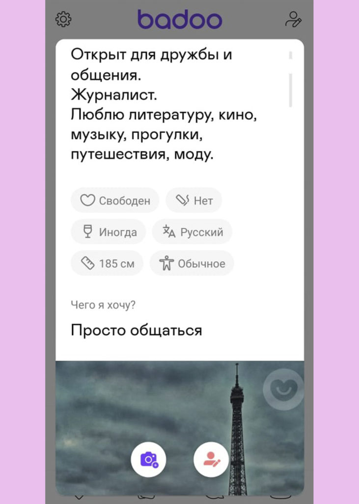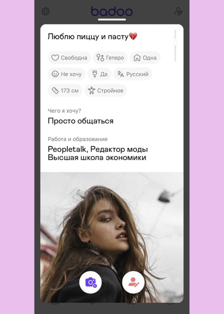 Личный опыт: За пару недель в Badoo я завел несколько приятных знакомств. Не так много девушек первыми проявляют инициативу, но в целом было несложно найти общий язык, так как цели знакомств и интересы мы сразу указали в описании профиля. С 21-летней Викой мы мило погуляли в парке Горького – она рассказывала об учебе на факультете кинопроизводства и активно рекламировала аккаунт своего кота Арнольда (да, кто-то очень любит мультики Nickelodeon) в Instagram. С SMM-специалистом Аней общение завязалось в виртуальном формате: из-за занятости обходимся пока видеозвонками. Конечно, не обошлось без странных свиданий. Так, договорились с 19-летней Катей пойти в кино на сиквел фильма «После». При встрече сразу заметил ее стеснение, поэтому решил на берегу расставить все точки над «i»: если не нравлюсь, можем спокойно разойтись. Девушка отнекивалась, а когда мы зашли в зал, сообщила, что хочет в туалет. Стоит ли говорить, что после этого Катю я больше не видел.