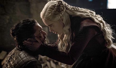 В следующей сцене нам показывают Дейенерис и Джона: Сноу говорит, что не знал достаточно хорошо Джораха, который умер, защищая Дени. «Он любил меня, но я не любила его так, как люблю тебя», — отвечает она и целует Джона. Позже Дейенерис просит его никому не рассказывать о своём происхождении (она, напомним, его тетя), потому что хочет оставить все между ними (и боится за себя, ведь у Джона больше прав на престол, и люди поддерживают и любят его сильнее, чем ее). Джон же считает, что правда не сделает им хуже, и говорит, что должен поделиться этим с Сансой и Арьей: «Ты моя королева. Они — моя семья. Мы можем быть вместе».