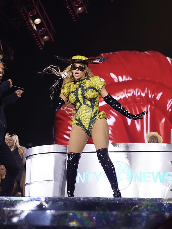 К слову, за черный монохром проголосовала и Крис Дженнер, которая не только появилась в весьма устаревшем мини-платье из эпохи 2010-х, но и сдобрила последнее «чересчур» минималистичными босоножками. И просто так инфлюенсер поделила тело пополам и визуально увеличила ноги. Наконец, в наряде Beyonce для концерта в Вашингтоне можно выделить всего-то два пункта. Первый – худший образ за все мероприятия тура певицы Renaissance и никак иначе. Второй – оммаж строкам «Ты пчела – я пчеловод» отечественного дуэта RASA явно не задался. Наслаждайся.