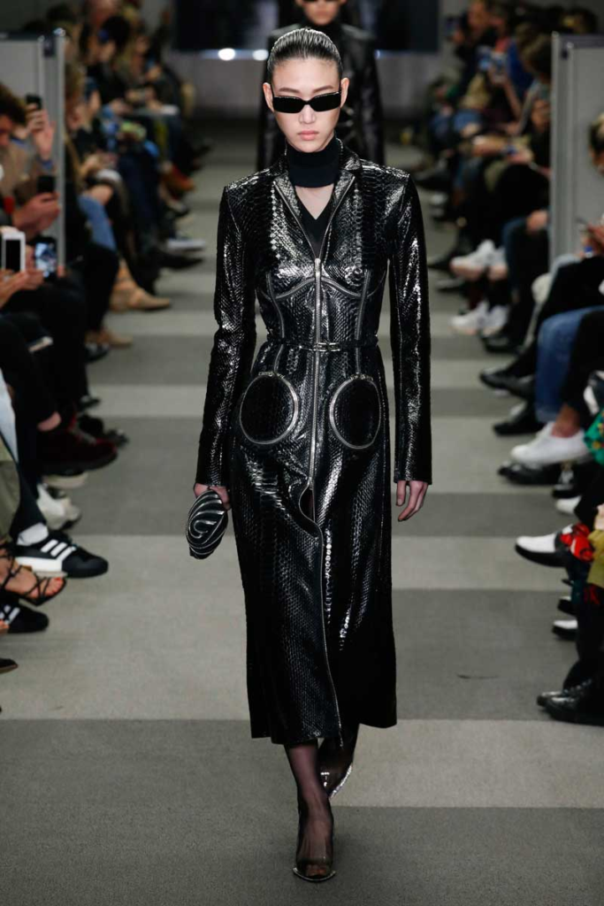 Визуальное совершенство, конечно, достигается в «Матрице» не только спецэффектами и техническими приемами. Это к тому же и очень стильный фильм. Зрители после использовали те же фразы, охотились за теми же образами – вообще мода на такие лаконичные черные плащи пошла именно после премьеры картины и успешно существует до сих пор. Цитирование фирменного стиля «Матрицы» мы позже увидим и на показе Vera Wang FW 2000, и в коллекции Balenciaga FW 2017, и в полностью посвященной фильму линейке Alexander Wang FW 2018, и на звездах. Ким Кардашьян, Джиджи Хадид, Кендалл Дженнер, Лупита Нионго – лишь часть многочисленных примеров.