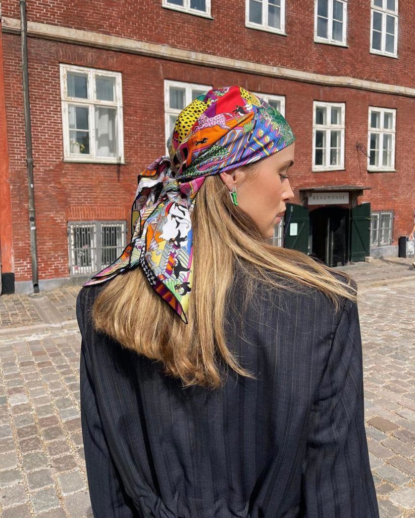 Этим летом шелковый платок засветился, кажется, в каждом втором fashion-аккаунте в Instagram. Да и звезды Голливуда быстро подхватили тренд на этот аксессуар. Не потеряет своей актуальности платок и осенью: Versace завершают им образ с огромным бомбером, а Maison Rabih Kayrouz дополняют им оверсайз-пальто.