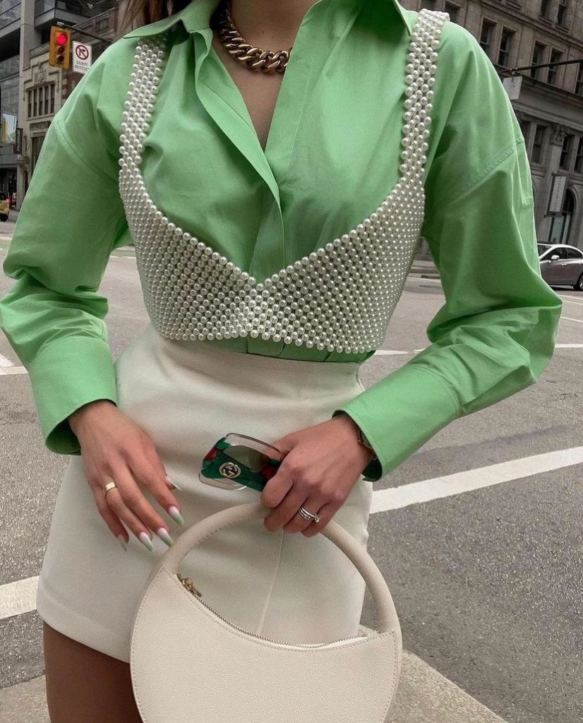 А асимметричные кроп-топы станут отличным дополнением к брючному костюму оверсайз (идеальный вариант для офиса).