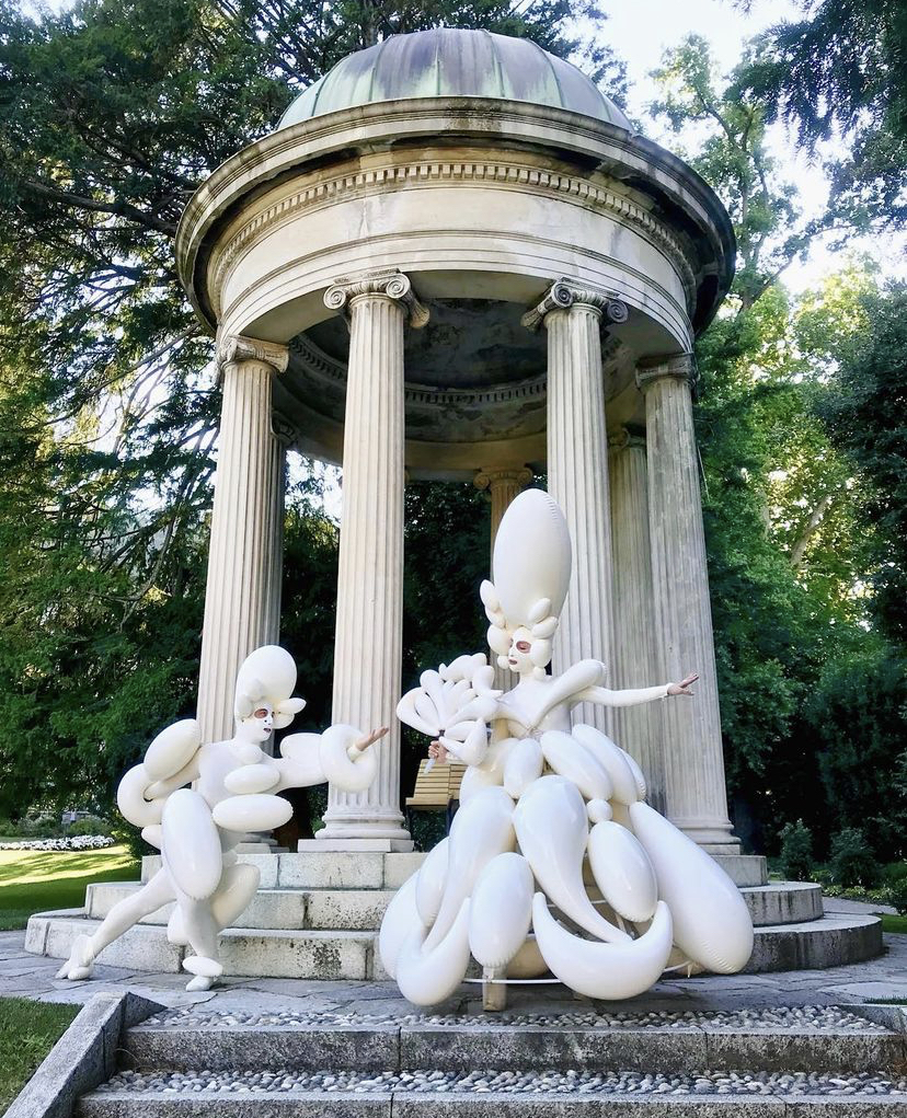 Еще одна современная отечественная художница, о творчестве которой весь мир узнал из Instagram. Все благодаря необычным поп-перформансам в ярких надувных костюмах из латекса. Весной 2018 года она выступала на открытии сезона Les Jardins D’Etretat в Нормандии. После этого Саша проснулась настоящей знаменитостью не только в арт-мире, но и в фешен-индустрии. Видео с ее перформансом за несколько дней набрало 400 тысяч просмотров. На следующий день на нее подписался сам Стефано Габбана, а еще через некоторое время ее пригласили выступить на торжественном ужине после кутюрного показа Dolce & Gabbana Alta Sartoria на вилле у озера Комо.