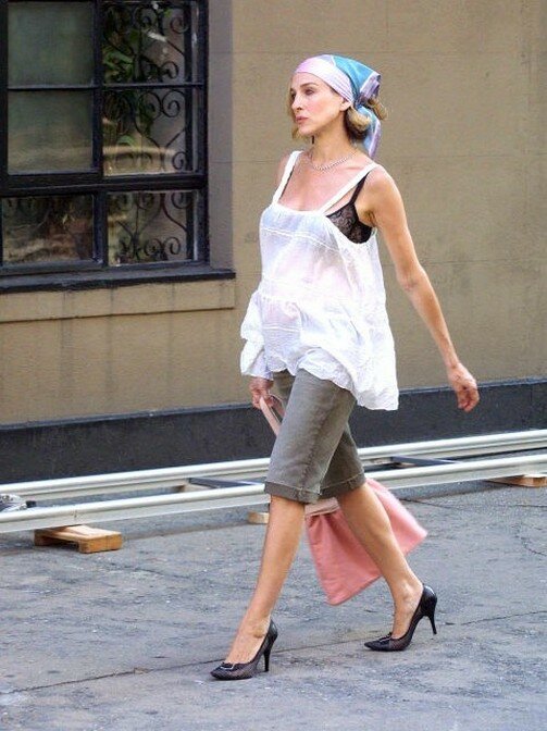 Не меньшей популярностью аксессуар пользовался и на телеэкранах. Эшли и Мэри-Кейт Олсен носили ярко-розовые банданы в фильме «Рот на замок», Стейси Дэш задавала тренды в картине «Бестолковые», а наша любимая Сара Джессика Паркер aka Кэрри Брэдшоу, как никто другой, сочетала их с капри и высокими каблуками.