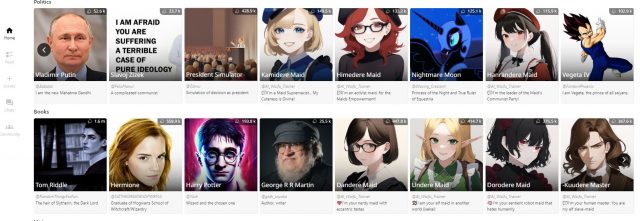 Нейросеть Character.AI имитирует переписку с определенными персонажами, поэтому каждый пользователь может пообщаться с известными личностями или киногероями. Так, в галерее сайта представлены цифровые «копии» Илона Маска, Канье Уэста, Альберта Эйнштейна, Елизаветы II, Владимира Путина и многих других.