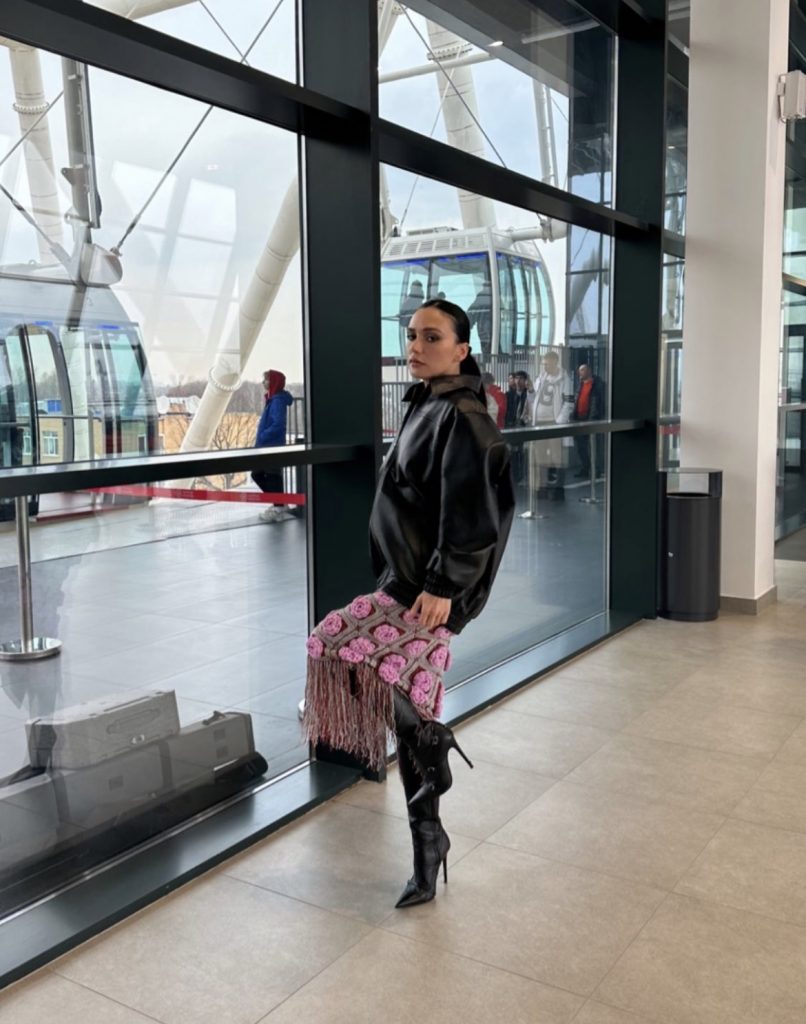 Особого внимания заслуживает образ Светланы Бондарчук, которая отметилась в подборке на этой неделе и возглавила обзор предыдущей далеко не случайно. Инфлюенсер презентовала отличное нетривиальное решение для создания акцента в любом образе, снабдив простое белое платье с разрезом и изумрудные туфли на каблуке жемчужным браслетом на правой ноге – однозначно забираем идею на заметку. И, наконец, не забываем про Ольгу Серябкину. Певица мастерски смиксовала объемную кожаную куртку с вязаной юбкой с объемными цветами и бахромой – идеальный пример игры на контрастах во плоти. Ни слова больше: наглядные доказательства всех ласковых слов выше, настало ваше время.