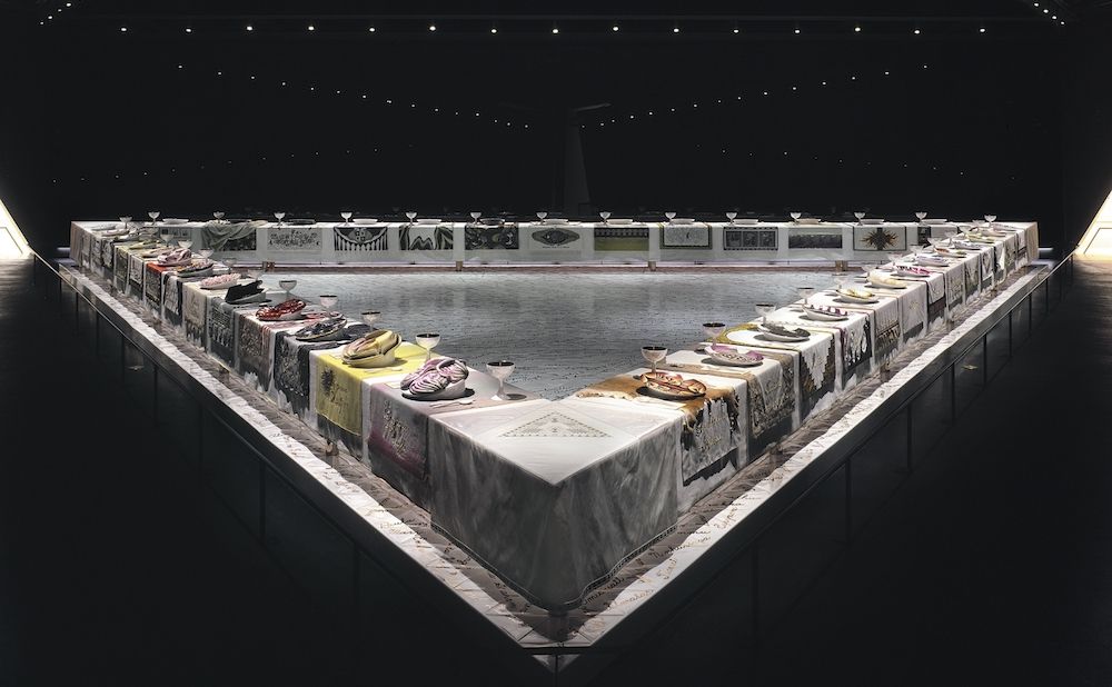 После пятого испытания в игре осталось всего три игрока: Сон Ки Хун, Чхо Сан Воо и Кан Сэ Бёк. Перед финалом надзиратели собрали их в зале с необычным треугольным столом, где подали ужин. Многим сначала показалось, что такая форма была выбрана исходя из фигур «Игры в кальмара». Однако это не так. Здесь внимательные зрители нашли отсылку к художественной композиции арт-феминистки Джуди Чикаго «Званый ужин». Эта работа американской художницы была посвящена выдающимся женщинам разных эпох и задумана с целью положить конец принижению и забвению роли женщин в истории человечества. На большом треугольном столе было выделено 39 мест для женщин, которые внесли особый вклад в развитие западной цивилизации.