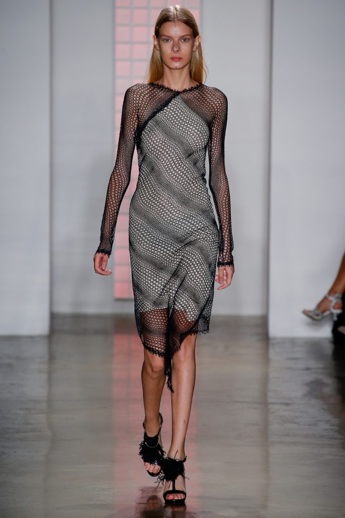 Сетка заполонила Недели моды в 2016 году. У Alexander Wang это была футболка, а у Dion Lee — платье-макси.