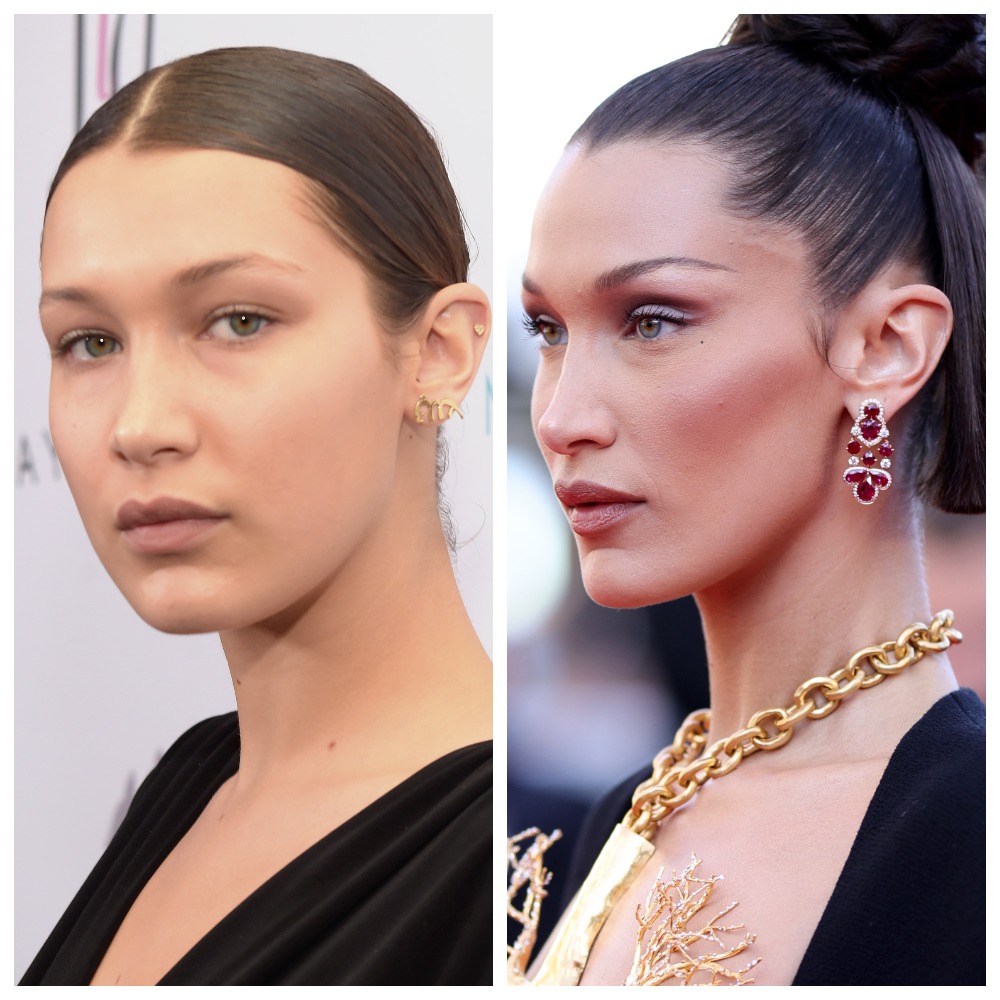 Если оценивать фотографии модели в более юном возрасте, мы видим, что у нее довольно крупные черты лица: объемные скулы, нижняя треть, периорбитальная часть, тяжеловатые верхние веки – все это признак молодости. Однако очевидно, что одним возрастом дело не ограничилось и Белла довела себя до идеала с помощью хирургических вмешательств.