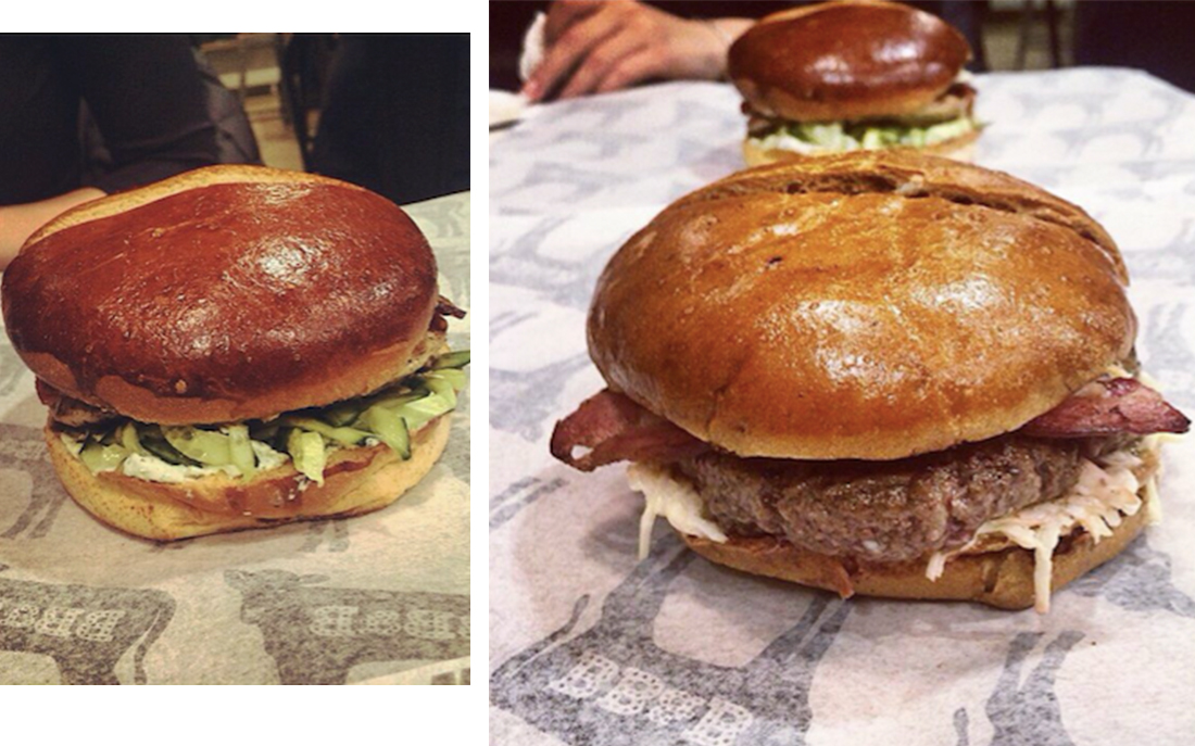 Уже на следующий день мы жадно поедали «Ронни» (380 р.) и запивали каким-то морсом. Хрустящий бекон, яйцо, сыр чеддер, салат «Коул слоу», фирменный соус и, конечно же, безупречные темные булочки, как у Кайли Дженнер (19). Цены смешные, атмосфера хипстерская, бургеры вкусные! Всем туда!