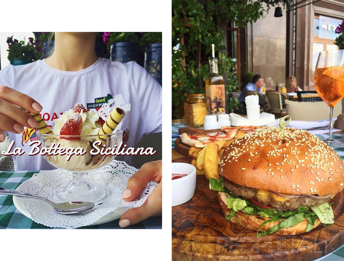 Еда выше всех похвал! Хрустящая пицца с копченым сыром скаморца, кальмарами и сицилийскими апельсинами, потрясающая паста с морепродуктами, пикантные десерты («Соленый карамельный делис с соусом баттерскотч, солью, медово-имбирным воздушным хлебом и гелем из гуавы») и другие изыски, способные вызвать восхищение даже у самого искушенного гурмана.