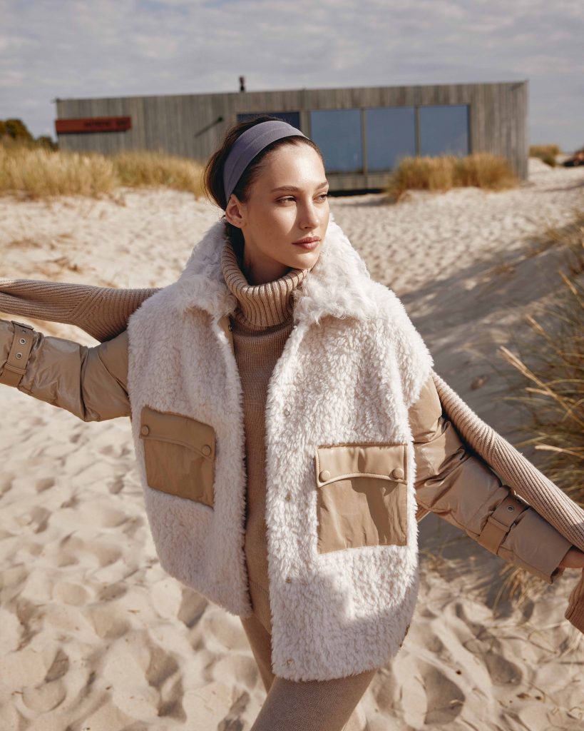 Еще в 2020 году карантин и режим самоизоляции вернули в моду тренд на уютную одежду. Поэтому неудивительно, что в осенне-зимних коллекциях дизайнеры снова поют оды трикотажу. Мы советуем выбрать кашемировый свитер с высоким воротником и стилизовать его с уютной курткой близких оттенков или с косухой из овчины, дополнив образ вместительным тоутом.