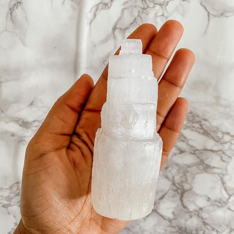 Минерал был назван в честь Селены, богини Луны. Он обладает мощными очищающими способностями, помогает расслабиться и «смыть» негатив.