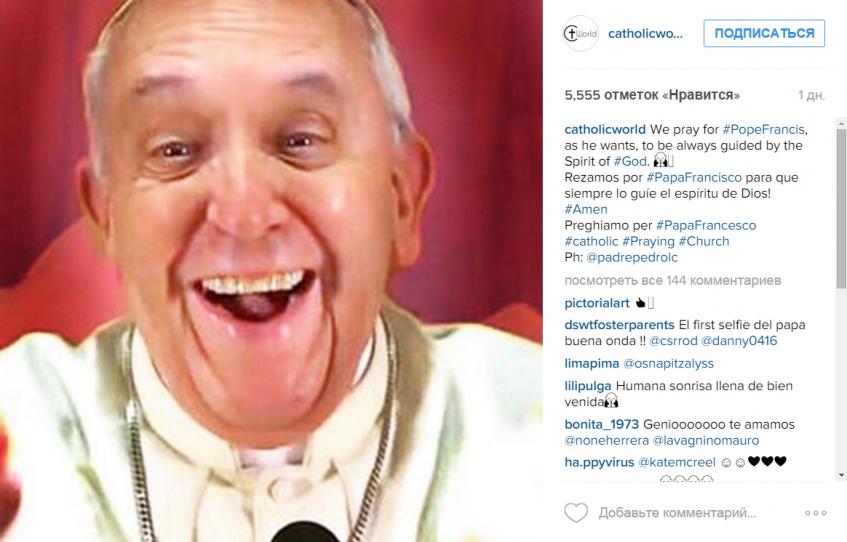 Нам очень понравилось новое фото Франциска. Надемся, он еще не раз порадует нас такими чудесными селфи.