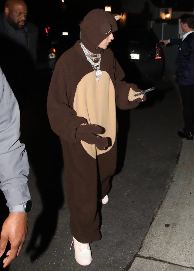 Они действительно выглядят очень круто, поэтому мы решили вспомнить и другие их совместные выходы. Например, на вечеринку по случаю Хэллоуина, где Джастин выбрал образ медведя, а Хейли — кошки.