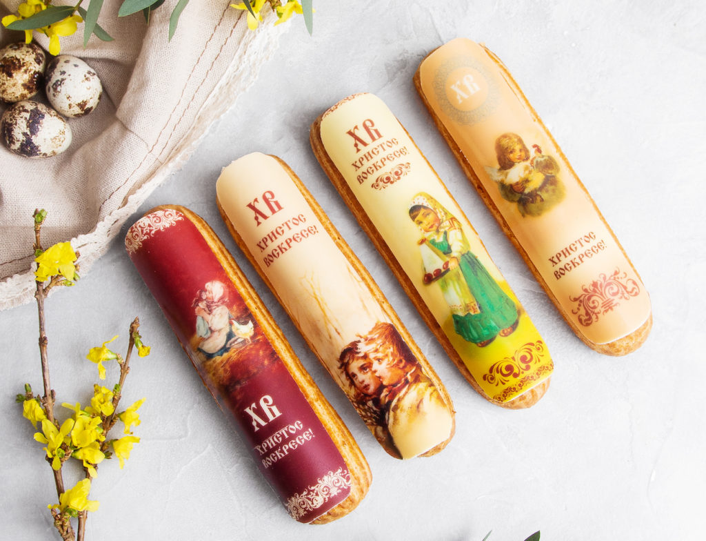В этом году в кондитерской «Кафе Пушкинъ» приготовили шоколадное «Фаберже», пасхальный десерт и яйцо из тёмного шоколада с трюфелем, куличи под куполом из белого и темного шоколада, творожную и шоколадную пасхи и многое другое. Это очень красиво!