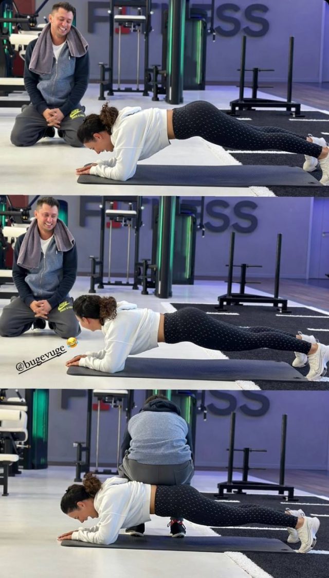 Зепюр выложила в Stories в запрещенной социальной сети коллаж фото с мужем из тренажерного зала. На них девушка стоит в планке, и если на первых двух снимках актер просто идит рядом, то на третьем он сделал вид, что сел на спину возлюбленной. Как же они друг друга любят!